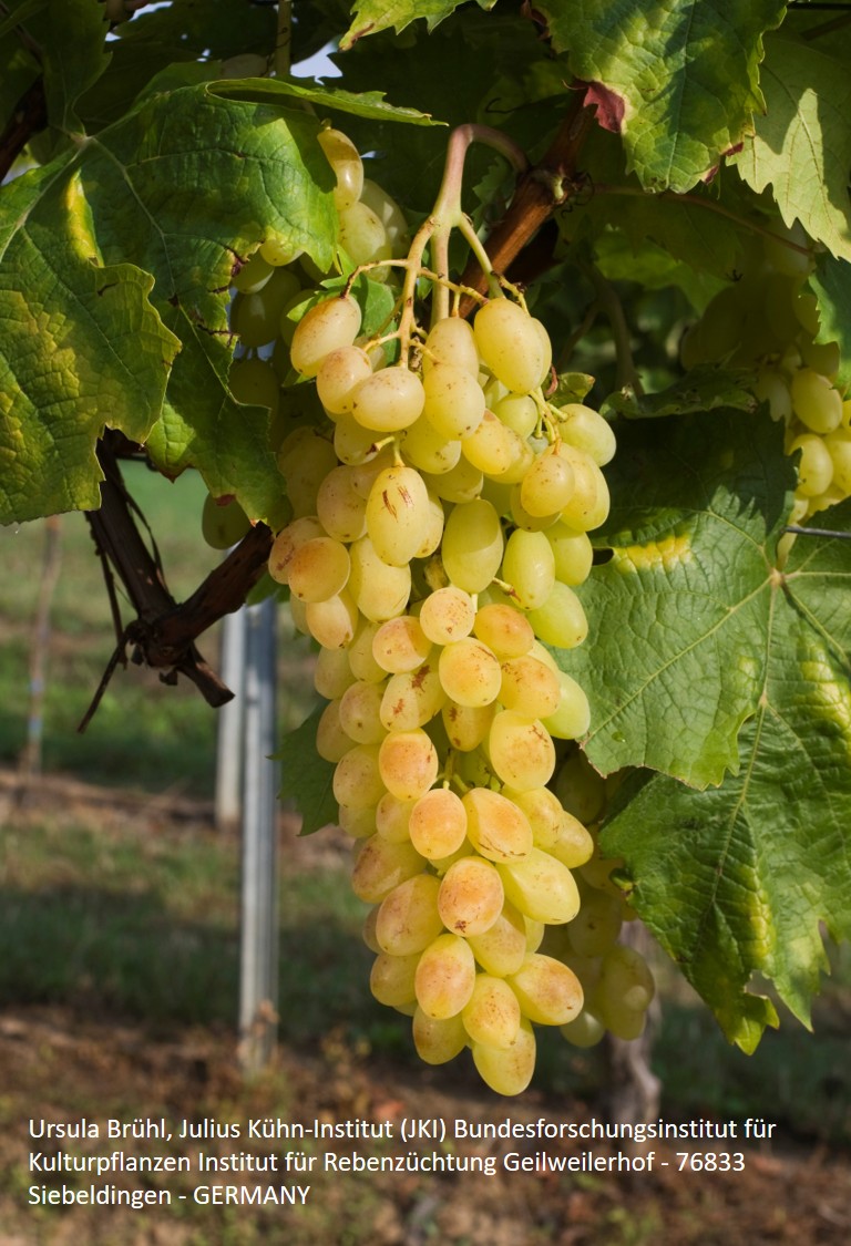 - Traube & Beeren: groß, lockerbeerig; langoval, spitz zulaufend, grünlich-gelb