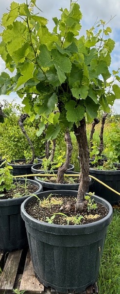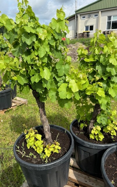 Diese alten Rebstöcke stammen aus deutschen Weingärten und sind etwa drei Jahrzehnte alt – gewachsene Einzelstücke mit Geschichte. Jede Pflanze erzählt von sonnigen Sommern, sorgfältiger Pflege und traditioneller Weinbaukunst. Mit einem natürlichen, knorrigen Wuchs und beeindruckender Vitalität fügen sich diese alten Reben harmonisch in mediterrane oder naturnahe Gartengestaltungen ein. Die hellen Früchte stehen für klassische Sorten aus dem deutschen Weinbau, deren Qualität bis heute überzeugt.