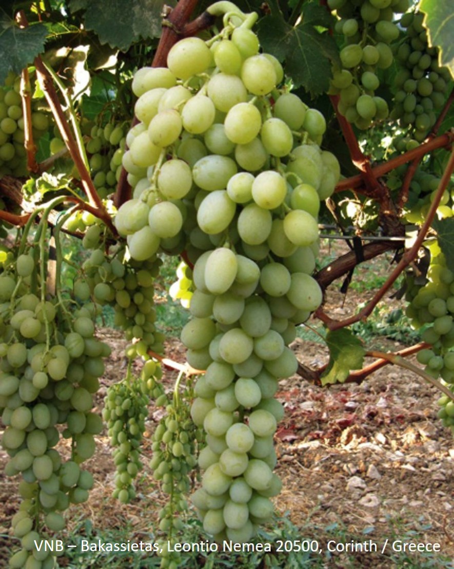 - Traube & Beeren: mittelgroße bis große, zylindrisch-konische Trauben, oft geflügelt; große, ellipsoide, gelblich-grüne Beeren; kernlos, knackiges Fruchtfleisch, neutral im Geschmack
